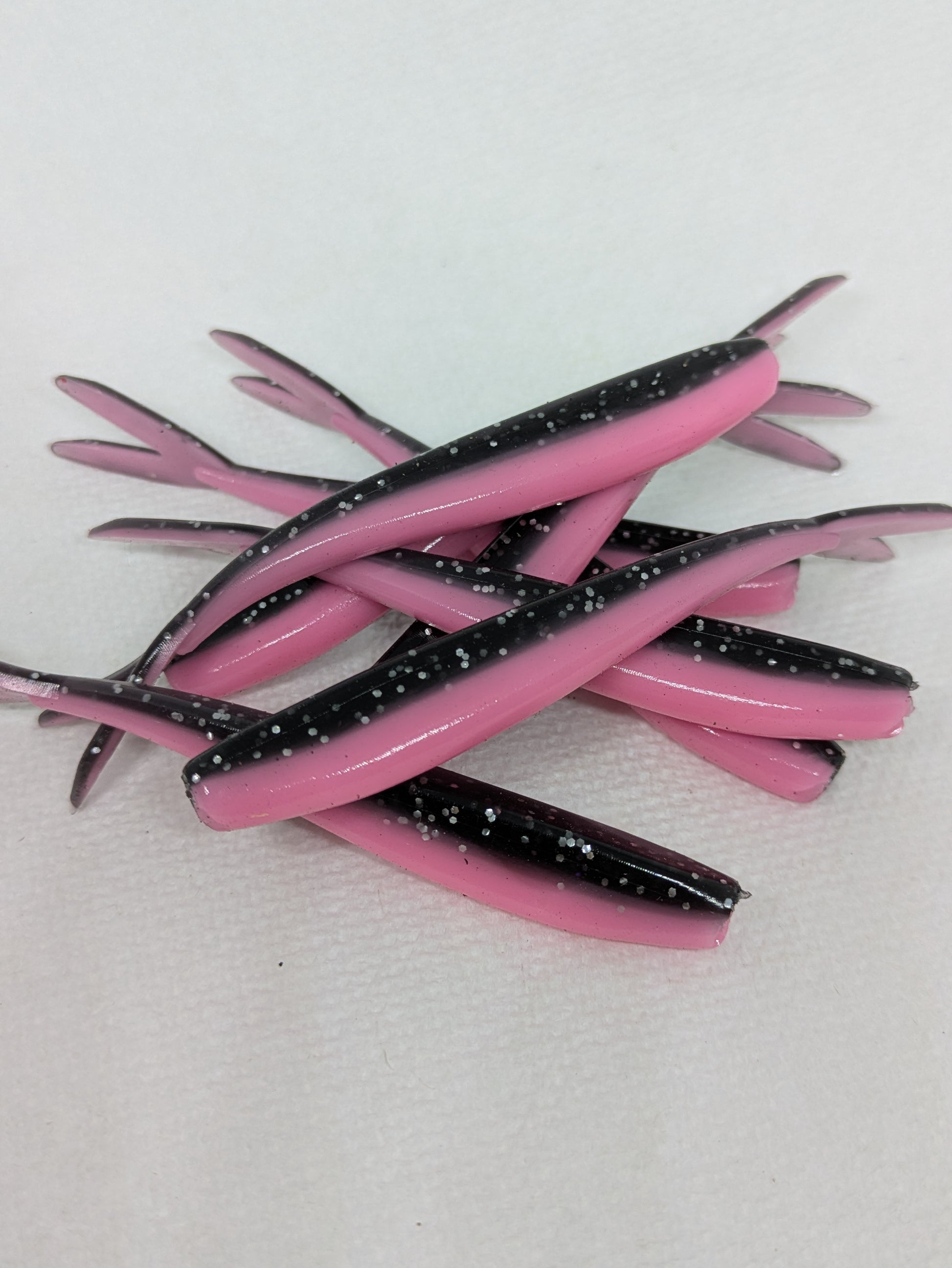 The motor city minnow is a 4" fluke style split tail minnow designed for jigging up walleye, lake trout, Ned rigging or drop shoting for bass. Our high-quality materials are a custom blend of soft but very durable soft plastic that will last for multiple bites.
