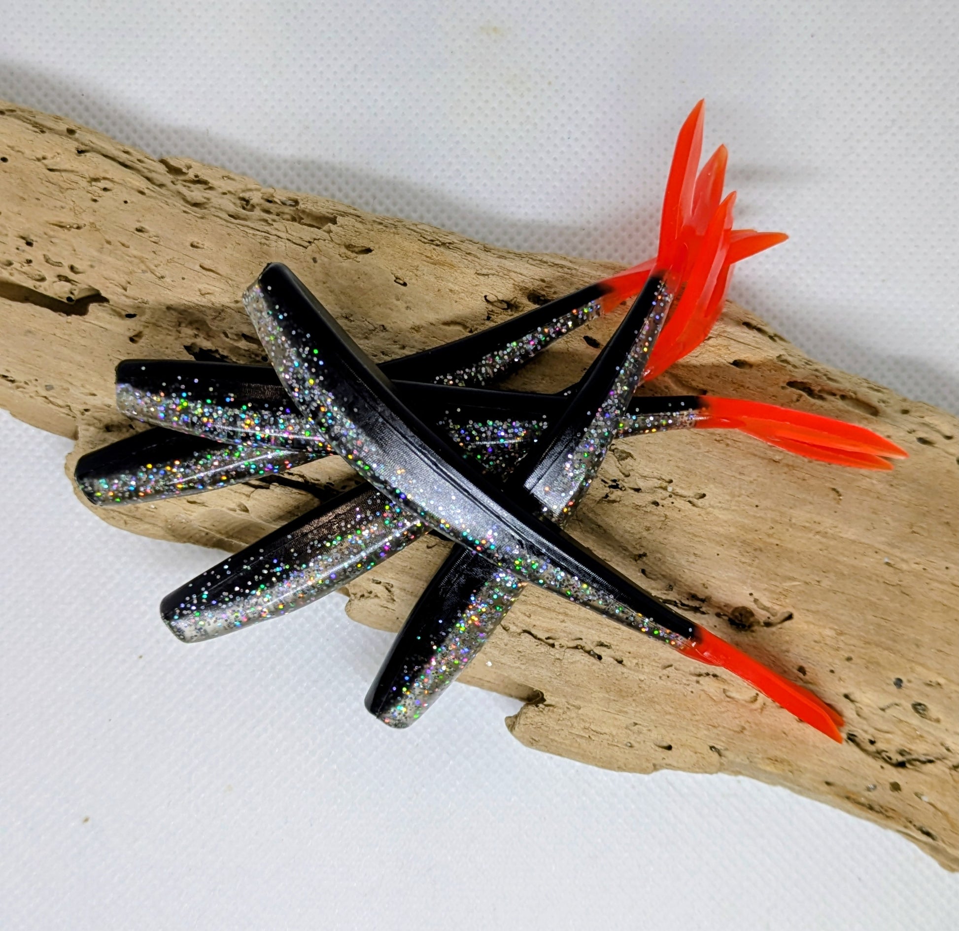 The motor city minnow is a 4" fluke style split tail minnow designed for jigging up walleye, lake trout, Ned rigging or drop shoting for bass. Our high quality materials are a custom blend of soft but very durable soft plastic that will last for multiple bites.